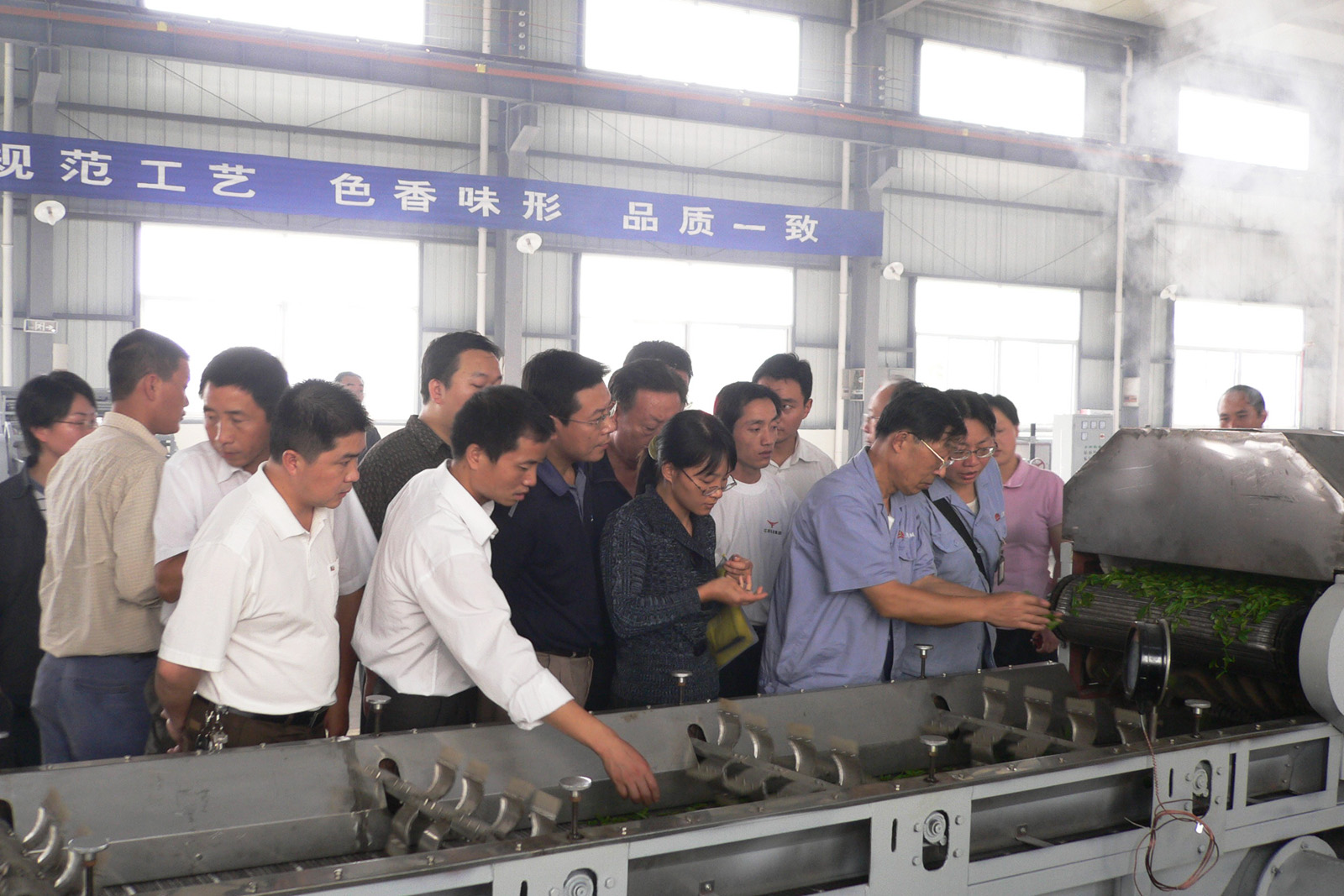 • 2004年,以“綠色、健康、創(chuàng)新、發(fā)展”為主題的全國茶熱點(diǎn)論壇暨茶加工清潔化流水線展示會在衢州勝利召開。公司首次展示了茶葉加工清潔化流水線成套設(shè)備,并贏得了與會領(lǐng)導(dǎo)、專家、客商代表共300余人的一致肯定。
