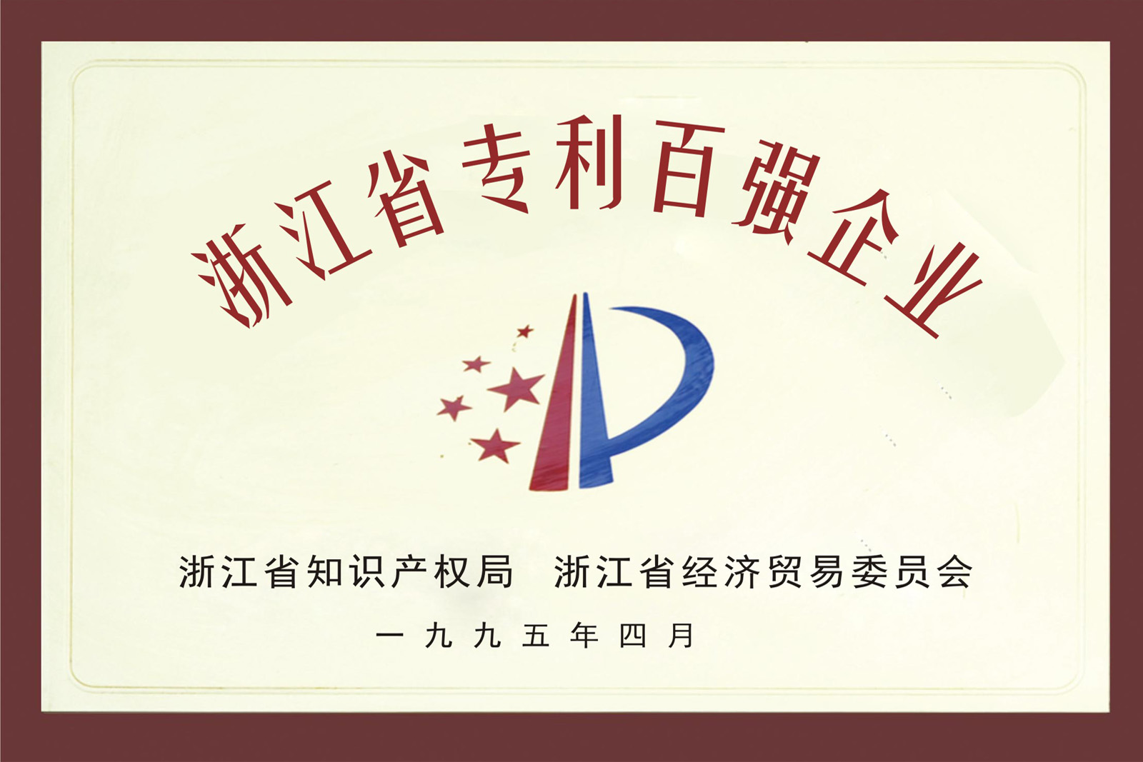• 1995年4月,公司被評為浙江省專利百強(qiáng)企。