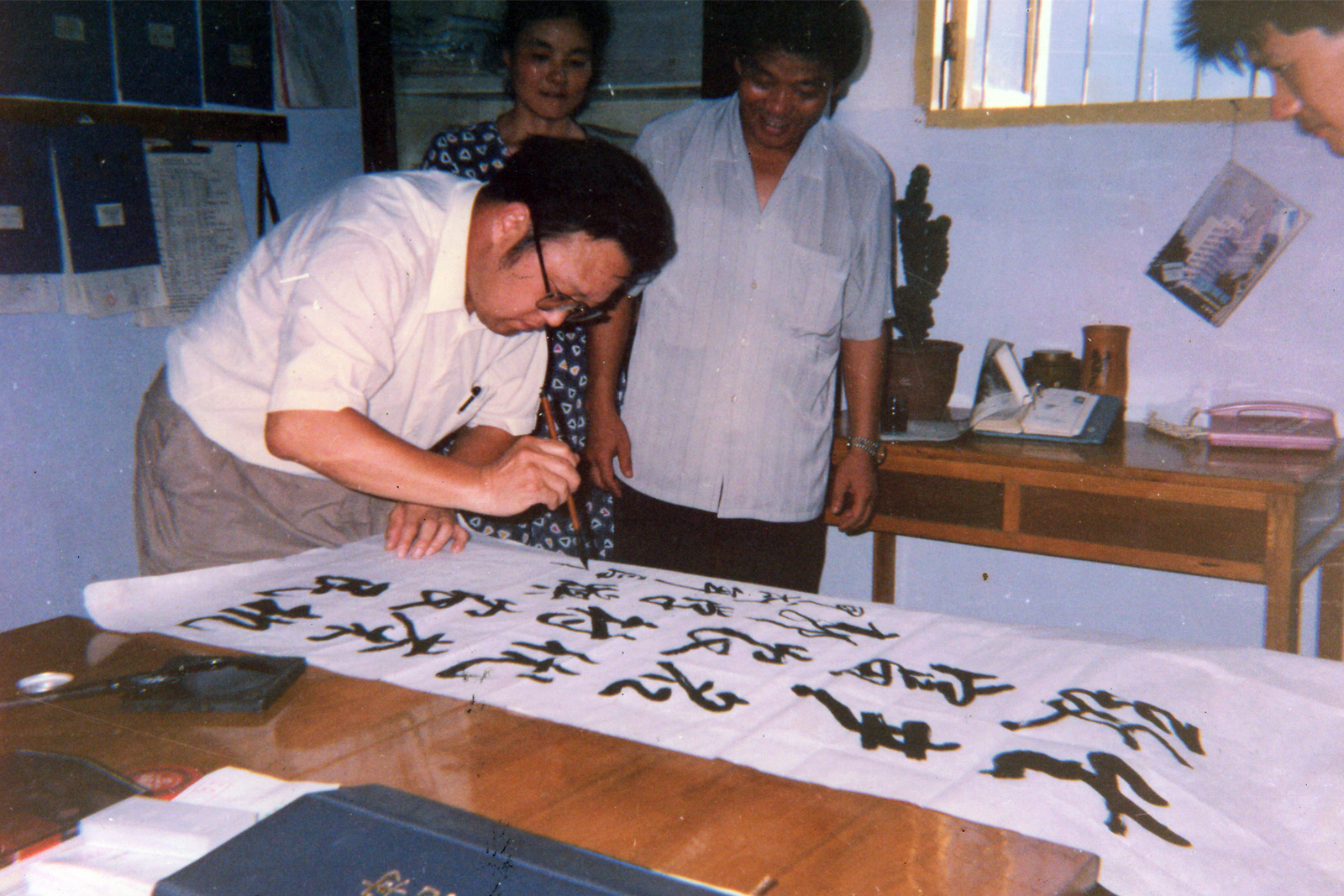 • 1990年, 衢州市委書記郭學(xué)煥來公司檢查指導(dǎo)工作。在聽取公司總經(jīng)理程玉明對相關(guān)茶機(jī)產(chǎn)品的介紹后,潑墨提毫贊“生產(chǎn)名優(yōu)茶機(jī),致富農(nóng)村農(nóng)民”。